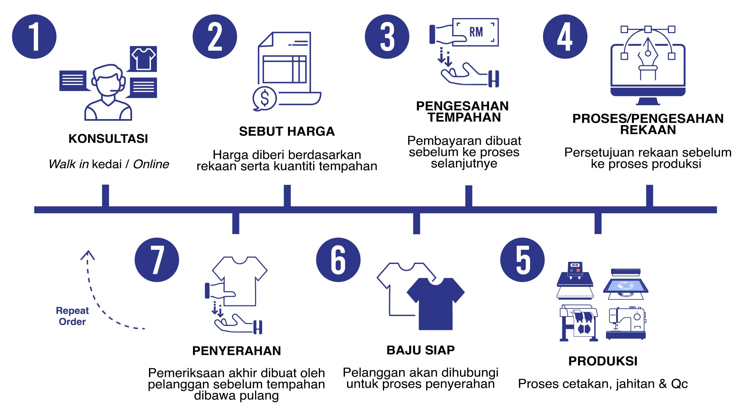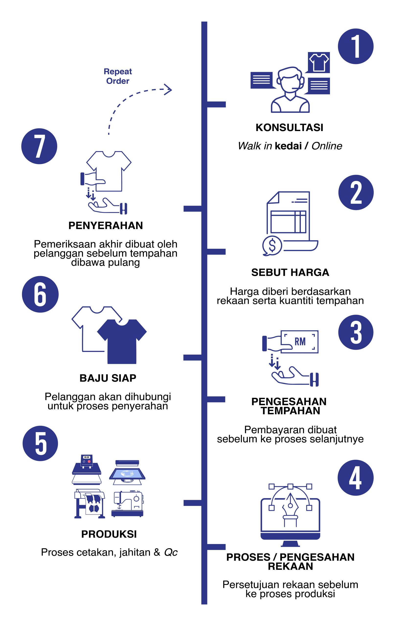 Selepas menerima baju, pelanggan mempunyai masa 3 hari bekerja untuk memaklumkan sebarang kerosakan yang mungkin